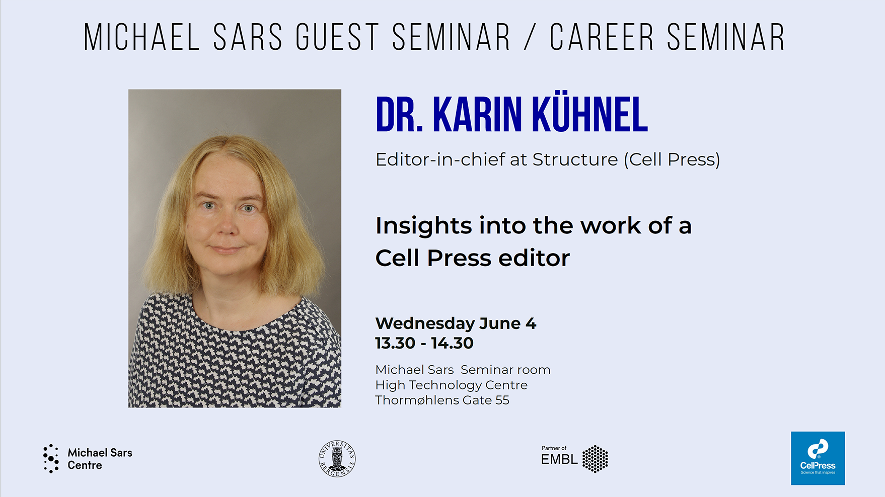 Dr. Karin Kühnel, editor-in-chief at Structure (Cell Press), will present: «Insights into the work of a Cell Press editor»