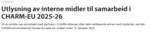 Se gjerne gjennom den interne utlysningen av midler for samarbeid i CHARM 2025-26. Det er tre ulike utlysninger, alle med frist 15. oktober: