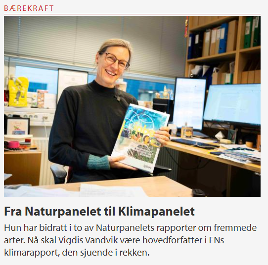 Fra Naturpanelet til Klimapanelet. Vigdis Vandvik blir en av hovedforfatterne i FNs syvende klimarapport