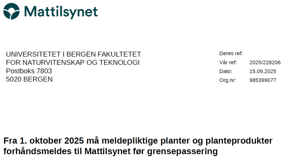 Fra 1. oktober 2025 må meldepliktige planter og planteprodukterforhåndsmeldes til Mattilsynet før grensepassering