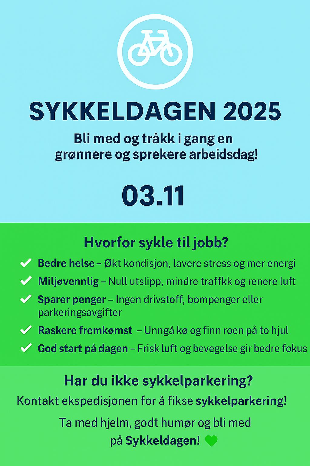 BIO kalender, Sosialt Bli med på sykkeldagen 2025 3. november 24. oktober 2025 Bbli med på sykkeldagen 03.11 for å få en kaffe, bolle og refleks! (PS du vil også få bolle, kaffe og refleks selv om du ikke sykler 😉