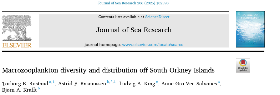 Rustand, T.E., Rasmussen, A.F., Krag, L.A., Salvanes, A.G.V., 2025. Macrozooplankton diversity and distribution off South Orkney Islands. J. Sea Res. 206, 102598. https://doi.org/10.1016/j.seares.2025.102598