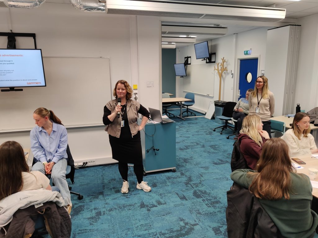 På slutten av seminaret jobbet studentene med aktuelle stillingsannonser, der de øvde på å koble sin egen kompetanse til kravene og forventningene som arbeidsgiverne beskriver i stillingsannonsen.