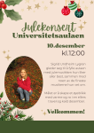 10.desember kl.12:00 inviteres alle ansatte til julekonsert i Universitetsaulaen. Ta med deg en god kollega og opplev Sigrid Undheim Lygren mfl. skape et øyeblikk med julemagi https://www.uib.no/universitetsaulaen/180651/julekonsert-i-universitetsaulaen Les mer om velferdsutvalget og meld deg på vår epostliste her: https://www.uib.no/foransatte/88681/velferdsutvalget