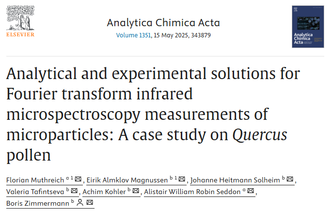 Muthreich, Florian, Eirik Almklov Magnussen, Johanne Heitmann Solheim, Valeria Tafintseva, Achim Kohler, Alistair William Robin Seddon, og Boris Zimmermann. «Analytical and Experimental Solutions for Fourier Transform Infrared Microspectroscopy Measurements of Microparticles: A Case Study on Quercus Pollen». Analytica Chimica Acta 1351 (15. mai 2025): 343879. https://doi.org/10.1016/j.aca.2025.343879.