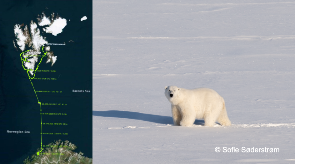 BIO News, Research Summer note from Marma-detox 18. August 2025 Laura, Maud, Sofie and Heli on board RV Kronprins Haakon sailing around Svalbard, looking for polar bears. They found 19! (Photos: Olivier Morin/Sofie Søderstrøm) Read more in the Marma-detox summer note 2025!