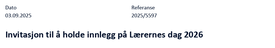 Teachers’ Day [Lærernes dag] will be held on January 30, 2026. We hereby invite academic communities from all faculties and departments to submit lectures, seminars, workshops and other academic contributions that profile current research at UiB. We therefore want this information to be disseminated to all relevant academic communities at both faculty and department.
