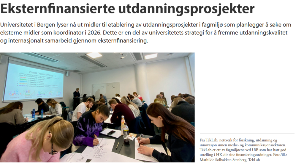 The University of Bergen is now announcing funding for the establishment of educational projects in academic environments that plan to apply for external funding as a coordinator in 2026. This is part of the university’s strategy to promote educational quality and international cooperation through external funding.